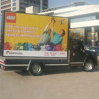 Gezici Reklam Panosu; Son zamanların gözde reklam mecrası Gezici Reklam Panoları olmuştur. Çift yön reklam alanı olan, led aydınlatmalı araçlar 7/24 reklam – tanıtım imkanı sunar.