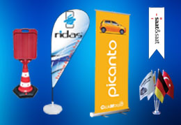 Kapı önlerinde, reklam amaçlı, plastikten imal edilmiş malzemeler.