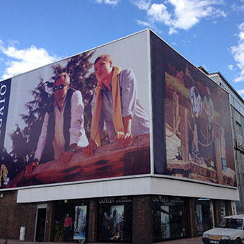İşyerlerinin dış cephelerinde, camlarında, tabelalarda ürün tanıtımı için oldukça etkili, ekonomik ve pratiktir, sattığımız ürünlerin tanınmasını, kampanyalarının öğrenilmesini bu yolla sağlayabiliriz. Ekonomik fiyatı ve pratik montajı sayesinde, kısa süreli kampanya duyurularında sıkça kullanılır.